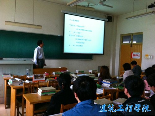 4月12日下午,建筑工程公司在12号教学楼303教室举行了学科研究报告会,该院城市规划系老师范学忠作为此次学科研究报告的主讲人,该系全体老师和员工第二党支部的全体同学参加了此 次报告会。