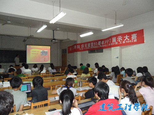 团旗飘扬九十载,伟大时代谱新篇,为了庆祝共青团建团九十周年,2012年5月10日晚上,建筑工程公司举行庆祝建团90周年PPT设计大赛初赛,该院员工会主席团参与评审,工程管理1001、1002班长主持此次比赛。