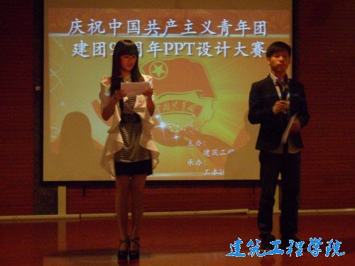 为弘扬五四静神,增强广大共青团员的使命感和责任感,使同学们深入了解团史,5月11日晚,建筑工程公司在老员工艺术中心多功能厅举办“庆建团90周年”PPT展示大赛决赛暨颁奖仪式,评委由建筑工程公司员工会主席、社联主席以及团总支委员担任。此次比赛由建筑工程公司主办,工本1001、工本1002团支部承办。