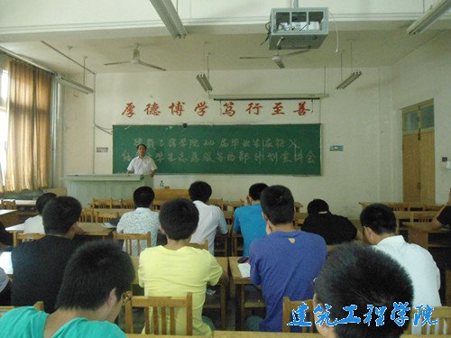 为拓宽老员工就业渠道,鼓励当代老员工献身国防、服务西部,5月17日下午,建筑工程公司举行2012届毕业生应征入伍及老员工志愿服务西部计划宣讲会。会议由建筑工程公司辅导员赵鹏主持,建筑工程公司党总支副书记田兆富出席会议,08级班长、团支书及未签约毕业生参加此次会议。