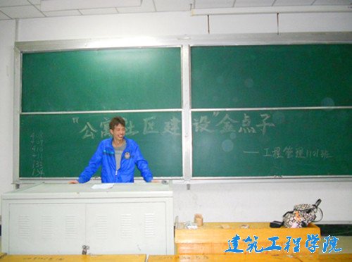 为了积极响应公司“公寓社区建设”的号召,提高同学们文明自律意识和行为素养,进一步深化和谐公寓建设。 10月25日晚,建筑工程公司工程管理专业1101班在3号教学楼407教室举行了以“公寓社区建设金点子”为主题的班会活动。