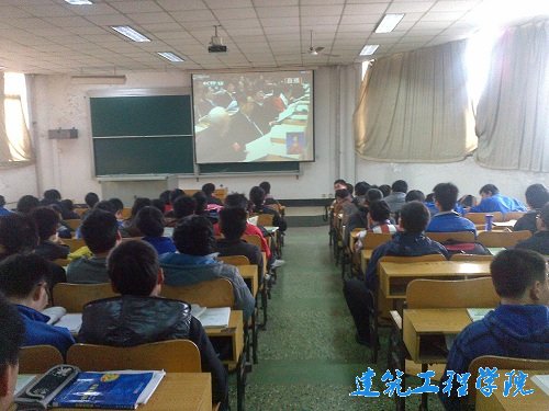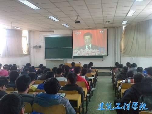 11月15日下午,建筑工程公司土木11级四个班共同举行团日活动,在3号教学楼403教室组织观看十八大开幕式。