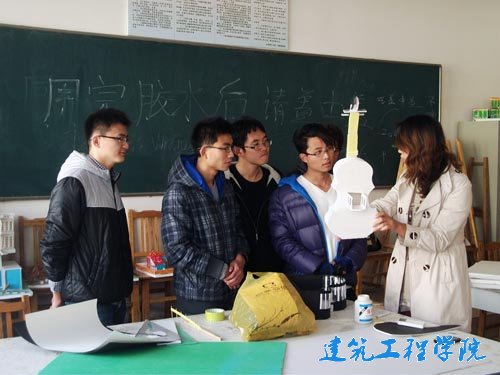此次活动是所有参加决赛队伍参赛作品的准备阶段,是使决赛选手在决赛中拿出优秀作品的一个重要过程,选手们今日制作出的模型将用于决赛的评选,因此选手们个个蓄势待发,认真准备。在现场建工之家社团准备了很多模板和精密的仪器供选手们使用,选手们首先用铅笔勾勒出自己的基本构思,随后用现场提供的裁剪工具裁出自己需要的形状,最后开始动手操作。每个小组的成员分工明确,使一个个看似困难的任务一下分解成了比较容易的几部分,每个人各司其职,有专门负责模型设计的,有专门负责提供材料的,还有专门负责组装和装饰模型的。同时,小组与小组之间也互相借鉴,取长补短,不断完善自己的作品。各参赛队伍以现实中存在的建筑物为依托,充分发挥想象力,全心投入到模型制造之中。经过一段时间的操作,很多小组的作品已经初具规模,如其中一组设计的“两琴相悦”模型,得到了在场观众的好评,“水立方”、“鸟巢”等模型也各具特色。