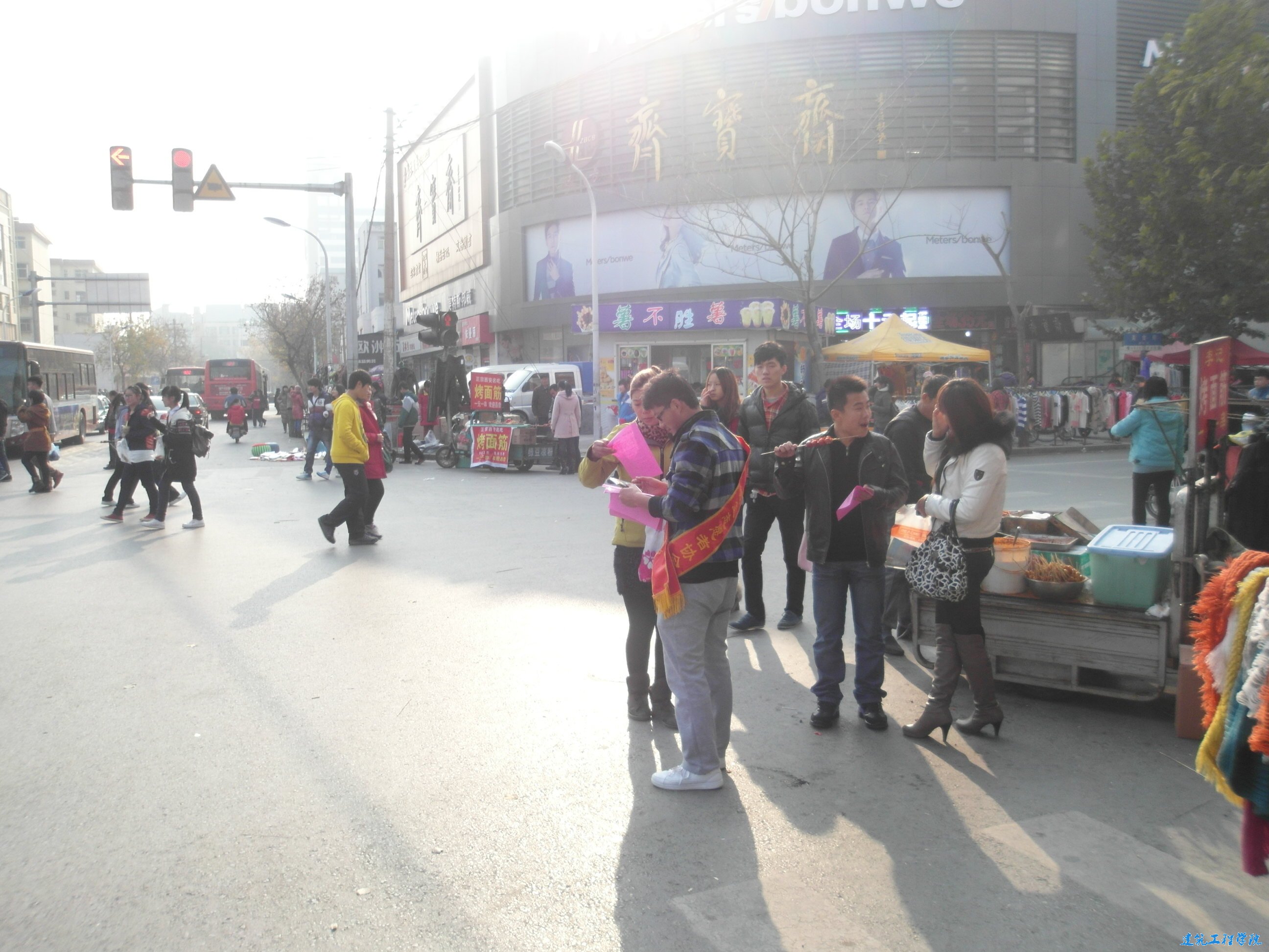 在车水马龙的淄博市美食街,尽管天气寒冷,温度较低。但为了宣传中华民族传统美德,号召大家奉献一片爱心。一项意义非凡的活动正在如火如荼的进行着。第一组协会成员每个人手里拿着厚厚的宣传单页,脸上洋溢着幸福欢乐,积极的向社会陌生人分发爱心传单。他们耐心精彩的为路人讲解此次活动“关爱弱势群体,重塑社会风尚”的目的,及“传播爱心,温暖人间”的伟大意义。过往路人无不驻足观看宣传活动,向协会成员了解相关事宜,共同营造了和谐融洽的温馨氛围。在繁荣的美食街,微尘志愿者们无疑成为了最美的一道风景。