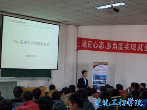 报告会伊始,许书恒结合自己的大学学习经历指出:理工科员工不仅要学习好自己的专业知识,还应适当涉猎经济、法律、心理、管理方面的知识,并适当的处理同学关系,积累好人脉,为以后的工作打下基础。随后,他向大家详细讲解了山东万事达建筑钢品科技有限公司的基本情况,说明了公司在进一步向技术型公司发展,并诚挚向同学们发出邀请。接着,许书恒对“就业与成才”这一话题谈论了自己独到的见解,他认为:一是老员工应具备自律意识,敢于钻研创新,具有上进心,有明确的目标等良好的品质;二是老员工应选择适合自己的职业,并结合自己三年政府公务员工作经历,向大家阐释了如何调整就业心态,如何选择未来的职业。同时,许书恒向大家介绍了一些简单的求职小技巧,建议同学们在面试时要做到简单真实,并预祝同学在求职时能一路畅通。许书恒总监实用而富有哲理的话语让同学们受益匪浅。