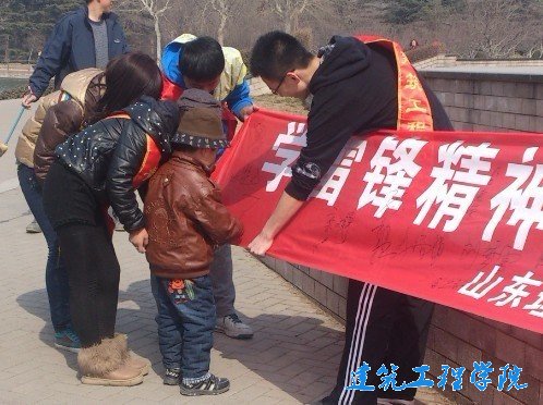 最后,大家聚集在一起,发起了“传承雷锋精神 深化志愿服务”的签名仪式,同学们积极地向行人们解说我们的活动,并邀请他们签名,与我们一起宣扬永不过时的雷锋精神。