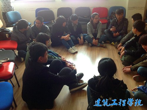活动开始前,王老师结合自己参加工作以来心得和体会,给大家讲述了大学时代纯真友谊的珍贵和难得,并希望同学们借此机会增进了解,加深交流。接着,同学们分成两队,在老师的带领下做了“蜈蚣翻身”、“心有千千结”两个趣味心理游戏。在活跃的游戏气氛中,两队同学用洪亮的声音喊出他们的口号,并主动参与,相互配合,积极总结自己的不足,最终两队在游戏中以2:2打平。最后老师和两队队长都做了活动总结,同学们也积极发言,分享在活动中的收获和感想。大家都表示,通过这次活动发现了更多同学的优点,了解了平时不熟悉的朋友,增强了团队合作精神。