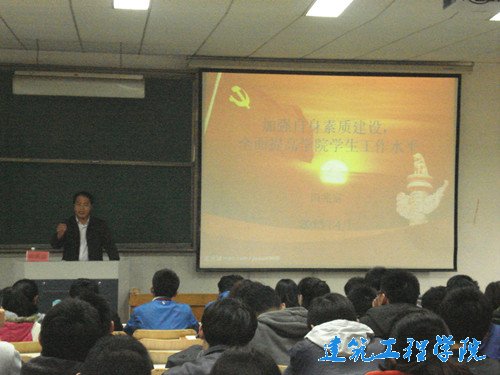 4月18日下午建筑工程公司2013年度团校培训开班仪式在4号教学楼104教室顺利举行。该公司党总支副书记田兆富和团总支书记张树霞出席开班仪式,员工会和社团联合会骨干成员以及各班班干部参加开班仪式。