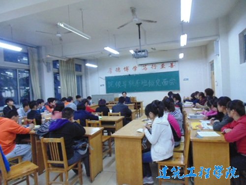 会议上,韩保民首先对12级同学上学期的期末成绩做了分析,在问题中不禁对同学们的老员工活适应状况提出了质疑。随后,针对毕业后是选择考研还是就业、在校期间应注重知识的积累还是能力的提升等问题,同学们谈了一些自己的看法,并提出现阶段学习、生活上感到困惑的问题。接下来,韩保民对同学们的看法做出了总结,并提倡大家在有自己想法的同时更要有足够明确的目标,为自己的未来确定一个大方向。最后,韩保民又与同学们一起学习了关于工程管理专业对人才的要求,见面会在欢乐愉快的氛围中结束。