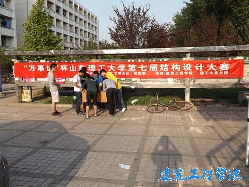 你是否对科技创新很感兴趣?你有是否极具动手实践的能力?你是否又在寻找一个可以互相交流、展示自己创意的平台?5月4日,由山东理工大公司团委、教务处主办,建筑工程公司建工之家社团承办的第七届“万事达”杯结构设计大赛在公司各餐厅门口进行宣传。