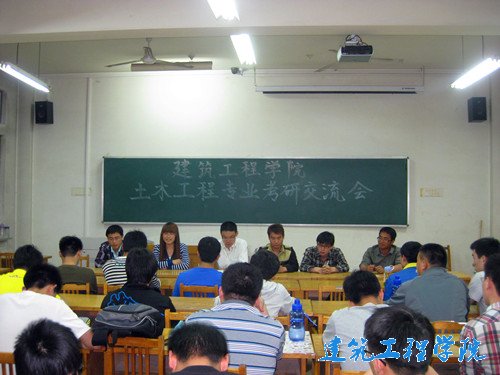 5月10日晚上,建筑工程公司分别在12号教学楼301教室和303教室举行测绘工程专业和土木工程专业考研交流会。两专业的研究生及10级部分同学参加交流会。