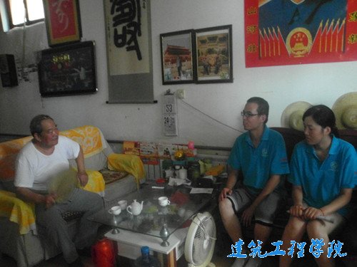 走进质朴的农家小院,队员们见到了李瑞芝老党员,健壮的身驱犹不减当年抗战时期的风采,四世同堂彰显时代的韵律。队员们首先向老党员问好,随后,就党中央十八大提出的"文化下乡"政策,他们与老党员进行了交流。李瑞芝先生告诉我们:当今党的政策越来越深入,越来越细致,不仅注重民生问题而且通过文化下乡等形式将当今的政策及先进的文化科教知识传播到农村,使得党的先锋作用发挥到了极致。老党员还就当代老员工社会任务进行了分析,鼓励老员工努力学习,学好科学文化知识,积极报效祖国。随后,他还饶有兴致的讲述了自己的抗美援朝经历,让听者时而感觉激烈而大快人心,时而又感觉紧张且心惊胆战。带着与党员交流的兴奋,队员们一起走访群众,在小巷里与围坐一起的群众交谈,其乐融融。