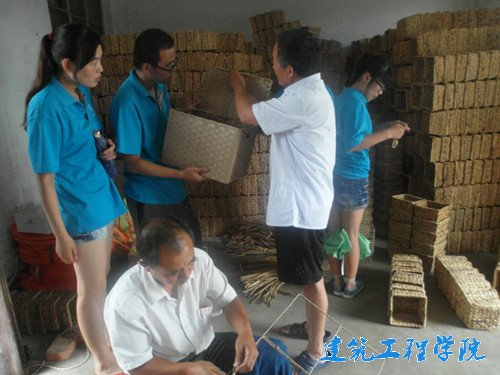 上午,队员们与巩同吉老师相聚村委会议室,欣赏了一场精妙绝伦的书法秀。遒劲有力的书法让在场的人惊叹不已,虽未见古人书写的酣畅淋 漓,却真眼见得古稀老人的笔走龙蛇。巩同吉老人为微尘文化下乡队题写了“加大文化下乡力度,促进城乡繁荣昌盛”等多个标语,而该队队员们把标语粘贴到各个宣传栏上。下午,实践团队来到了夏六村村委会,了解该村的编织文化发展过程,参观了编织工艺的现场。编织多年的徐大阳夫妇,热心温和,对提出自己动手的老员工细心讲解,手把手教学。与此同时,在夫妇二人做工的车间里,有大量的用水葱做成的篮筐及多种多样的编织工艺品,如大型的储物框、小型手提篮等。出口编织产品成为当地村民的主要收入来源,也带动了当地的经济发展。