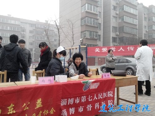 为了让老人了解医学知识,增强预防疾病观念。12月8日上午,由淄博市第七医院和山东理工大学微尘爱老助老社团联合举办的“关爱老人传递温暖社区义诊”活动在淄博市张店区金鑫园小区广场举行。