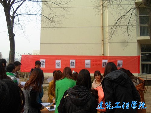 2014yle="font-family:宋体;">年yle="font-family:Calibri;">3yle="font-family:宋体;">月yle="font-family:Calibri;">6yle="font-family:宋体;">日中午yle="font-family:宋体;">,建筑工程公司在yle="font-family:Calibri;">9yle="font-family:宋体;">号宿舍楼与yle="font-family:Calibri;">13yle="font-family:宋体;">号宿舍楼旁边举行了“学雷锋一日捐”主题团日活动,活动吸引了很多在校同学为贫困地区捐赠文具与衣物,发扬了雷锋同志的无私奉献的精神,传播了校园正能量。