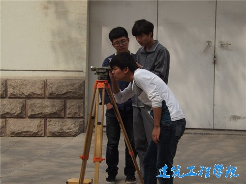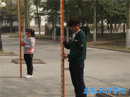 此次比赛,同学们热情参与,比赛组数多达六十二组。虽然参赛人员众多,任务繁重,但是组织者们仍有条不紊地维持着比赛秩序,整个比赛过程明朗流畅,体现出了建工学子们较好的素质。比赛每组四人,一人负责测量,两人立尺,最后一人负责记录并计算数据。在这样分工明确的情形下,测量过程流畅而迅速。