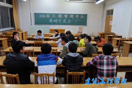 4月29日晚上,建筑工程公司在12号教学楼301、yle="font-family:Times New Roman;">302yle="font-family:宋体;">、yle="font-family:Times New Roman;">303yle="font-family:宋体;">、304yle="font-family:宋体;">教室举行2014年考研交流会。此次交流会由来公司各专业考研取得优异成绩毕业生传授经验,各个专业准备考研的同学参加交流会。