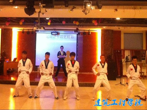 第一个上场的团支部表演的节目就令人眼前一亮——影子舞。参演成员依次上场,在灯光的映衬下,将生活中的一幕幕在暗布后栩栩如生的表现出来,整齐划一的动作、逼真形象的手技无不令在场观众叹为观止,赢得评委和周围观众的阵阵掌声。随后依次上场的团支部都分别用不同的方式来表现班级内部精彩的生活,土木3班团支部用铿锵有力的歌声表达出同学们内心的期盼和理想;工管2班团支部则是重现班级生活中的点点滴滴,用生活中一个个微不足道但却饱含温暖的细节来表现“大家相亲相爱一家人”的主题;土木2班团支部则是另辟蹊径,用一幕幕舞台剧来体现班级的凝聚力与团结力量……