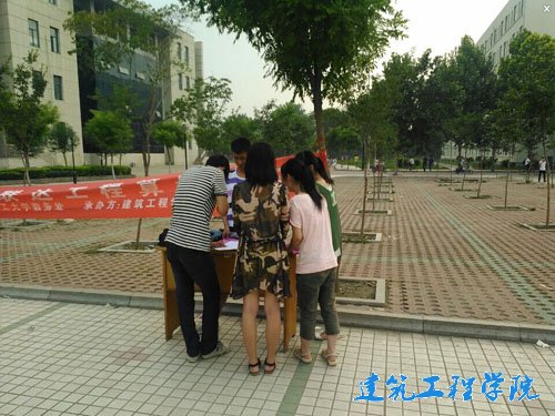宣传活动刚开始,同学们看见鲜红显眼的横幅,纷纷过来询问在搞什么活动,建工之家社团宣传的干事详细的为他们解释此次活动的目的和意义。此次的活动宣传主要包括以下四方面。参赛对象及比赛内容、活动日程、奖项设置、报名方式。参赛对象分为专业组(工程管理专业三年级以上的在校生)和非专业组(除工程管理专业三年级以上的全体在校生)。而专业组和非专业组的比赛内容都是图形算量、钢筋抽样、工程计价。比赛的奖项设置有四个等级,一等奖5%、二等奖10%、三等奖15%、优秀奖20%。活动过程中每一位成员都热情积极的投入到广联达宣传活动当中。在经历了一个多小时的宣传活动后,最终使得活动顺利结束。