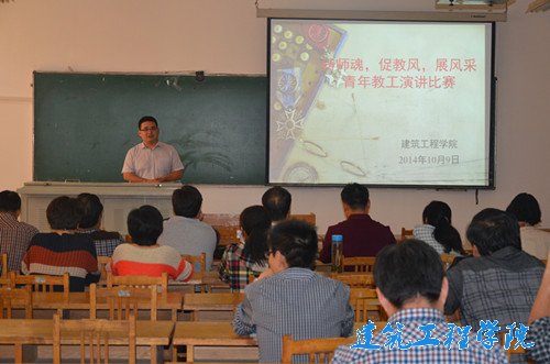 2014年10月9日下午,建筑工程公司在12号楼311教室举办“铸师魂、促教风、展风采”青年教工演讲比赛,7名青年教工参加比赛,公司全体党员出席。