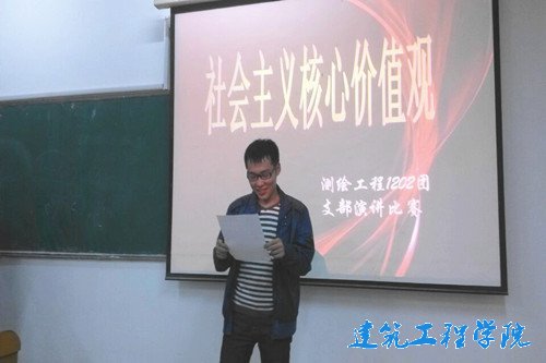 为贯彻落实“社会主义核心价值观”精神,在员工内部广泛开展和践行相关活动,10月9日下午,测绘1202团支部在12号教学楼301教室举行了“学习社会主义核心价值观”主题团日活动。