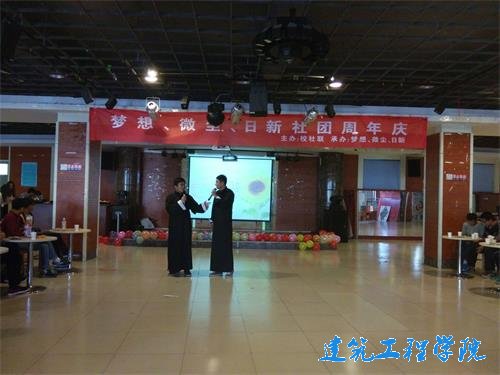 庆祝活动开始,赵振强同学演唱了一首带有古典韵味的《清明上河图》,歌声清远悠扬,婉转动听,高潮处更是赢得了同学们的阵阵掌声和声声喝彩,现场安静的气氛一下子活跃了许多。接下来是观众互动的游戏“占领阵地”,这主要考验同学们速度与反应。参与游戏的每个人都努力“占领”椅子,尽管一个个身手敏捷,眼疾手快,还是有人踩到别人的脚,抢椅子的时候,瘦的同学竟被高大强壮的同学硬生生挤下来,虽然如