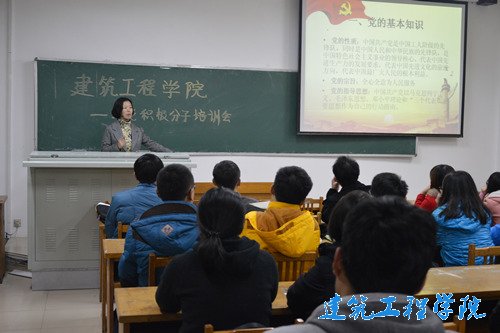 11月26日晚,建筑工程公司在12号教学楼303教室举行入党积极分子培训会,建筑工程公司党总支书记李新红主持会议并对入党积极分子进行培训。