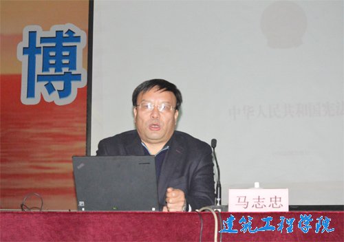 此次报告会以“弘扬宪法精神,全面推进依法治国”为主题,以“宪法为我国的根本大法”为切入点,强调宪法于国家、于人民的重要性。他首先讲述我国宪法的发展史,并逐一对每一次宪法的修改做出辩证的评论。他认为:正是由于中国近代发展过程中有惨痛的历史教训,十八大四中全会才首次将依法治国作为会议的主题。同时,他指出:宪法作为国家的根本大法,作为中华民族共同价值体系,应保持其权威性、严肃性以及稳定性,只有坚持依法治国,依宪治国,方能为国家发展扫清体制和思想的障碍,才能保障社会公平公正,中国才能走得更好、更稳、更远,这就是十八大四中全会的精神与意义所在。随后,马志忠又结合各种社会现象,指出现代社会部分人法制意识淡薄,社会存在着各种违反法律的现象。他表示,真正的法制是通过依法治国来使全民都有社会法制信仰以及全民守法意识。对此,他希望同学们认真解读并学习十八届四中全会精神,树立法律意识,严格要求自己。马志忠老师铿锵有力的言语,引发了现场同学深刻的思考与反思。