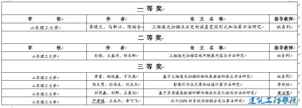 本次竞赛由教育部高等公司测绘学科教学指导委员会和中国测绘学会测绘教育委员会联合举办,共有武汉大学、解放军信息工程大学、同济大学等29所大学推荐的145篇论文参赛。