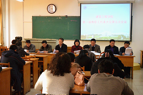 12月30日下午,建筑工程公司在12号教学楼311教室召开第一届教职工代表大会第五次会议。59名教代会代表参加会议,会议由党总支书记李新红主持。