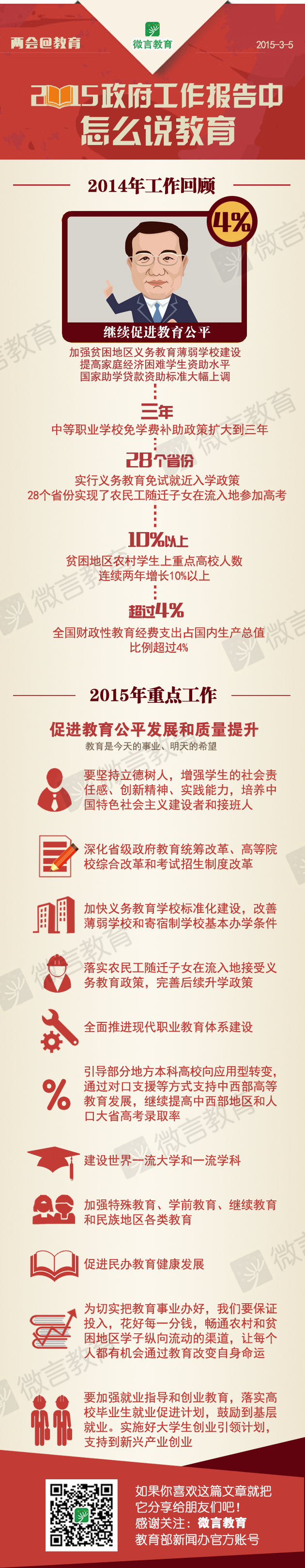 2015政府工作报告中怎么说教育