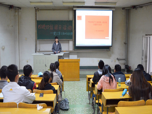 为提高同学们参与文体活动的积极性,牢固树立对党的科学理论的信仰,坚持实现“中国梦”的理念,建筑工程公司团校第三团支部于4月12日上午在15号教学楼105教室举行“四进四信”主题团日活动。