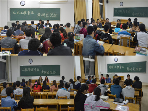 为加强员工对考研的了解,把握考研走向,为备考的莘莘学子点燃一盏前进的明灯,4月18日晚,建筑工程公司于12号教学楼 301、302、303、304教室分别同时举行土木工程、测绘工程、工程管理、城市规划专业考研交流会。公司邀请多位2010级考研成绩优异的员工,面对面解答同学们的疑惑,并传授其成功经验。2012级、2013级、2014级部分员工参加此次交流会。