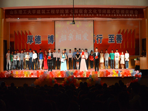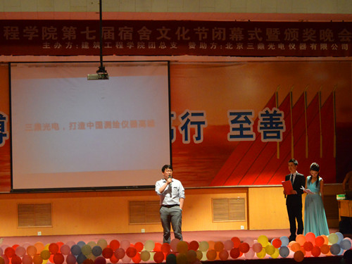 4月26日晚,建筑工程公司第七届宿舍文化节闭幕式暨颁奖晚会在三号报告厅举行。此次晚会由北京三鼎光电仪器有限公司倾情赞助。北京三鼎光电仪器有限公司经理于洋先生,建筑工程公司辅导员赵鹏老师、亓强老师,该院宿舍管理员李明老师出席此次活动。