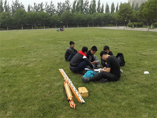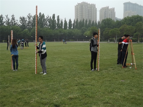 进入专业组决赛的共30个小组,分三轮进行。清楚比赛规则后,同学们整齐划一,迅速展开比赛。小组成员之间配合密切,立刻将水准仪固定至标致点上,调节光度,调整精平,测量过程流畅进行。队伍成员轮流测量,围绕部分草坪测量四站,每部分测量地点都配有计时员确保比赛顺利进行。社联各部门工作人员积极配合,维持比赛秩序,做好幕后工作,使各项工作有条不紊。比赛正如火如荼的开展,一会小雨蒙蒙,冷风习习,选手们发挥团结协作、不怕吃苦的精神,忍着风吹雨打,将比赛进行到底。