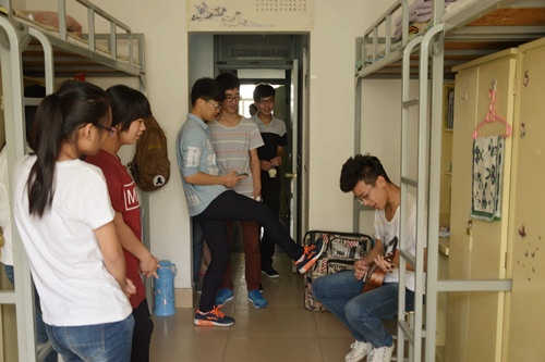 上午九点,男生们便成群结队地聚集在13号楼宿舍楼和女生研究生公寓楼下,在负责人带领登记后进入女生宿舍。女生们早就将宿舍打扫干净,物品摆放整齐,等待参观者的到来。男生们一进去宿舍,就赞叹不止,称赞女生宿舍舒适整洁,艳羡声中流露着他们对女生勤劳爱干净的夸赞,女生们也从刚开始的羞涩变得热情起来。男生女生兴致勃勃地聊天,分享生活中的趣事糗事,女生向男生传授保持宿舍卫生的经验。热情好客的同学更是拿出了零食招待参观同学。随后,女生们便跟随男生来到22号公寓楼。相比较女生的细心贤惠,男生们则略不修边幅,被子未叠,地没扫,女生调侃男生:宿舍卫生跟他们的好客热情成反比。男生们向女生展示了他们宿舍的足球、篮球、吉他、小宠物、盆栽等“宝贵财富”。互访活动一直有序和谐地进行,宿舍中更是笑声不断,其乐融融。