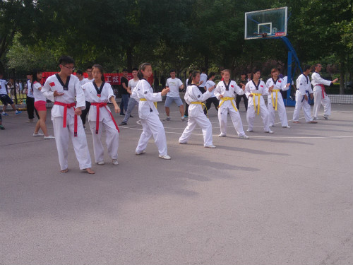 继5月9日举办的“师生健身月,理工炫武行”活动受到了颇高评价。5月30日下午,跆风跆拳道协会、太极拳协会、武术协会、双截棍协会在第二体育场进行了社团交流切磋活动。