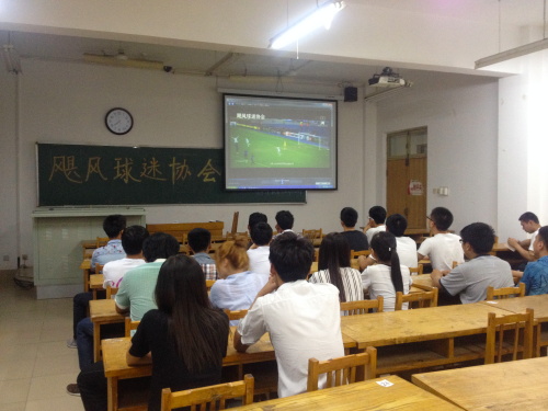 6月13日晚,由飓风球迷协会主办的观看2014-2015赛季赛事集锦活动在12号教学楼303教室举行。此次活动旨在号召更多人关注足球文化,为热爱足球的员工提供一次交流的平台。