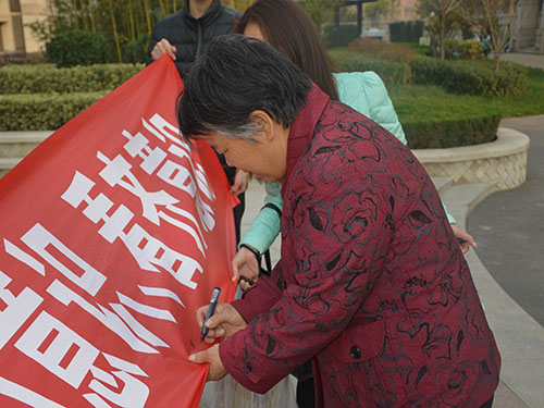下午两点,学员们准时在公司西门集合,在党团部成员的带领下有秩序的前往林泽花园。到达目的地后,学员们分成四组,分工协作,行动迅速。其中两个小组向社区清洁工借来卫生工具,他们有的拿扫帚,有的拿垃圾桶,还有的徒手捡垃圾,不放过每个角落,每个人都为社区的环境卫生贡献出自己的一份力量。他们团结合作,工作认真仔细,深入实际,为居民办实事,全面贯彻落实党的群众路线。另外两组学员们挂好“全面深入贯彻十八届六中全会精神,增强政治意识、大局意识、核心意识、看齐意识”条幅,积极向小区居民普及党的知识与内涵。小区居民纷纷表示大力支持此次社会实践活动、坚持党的领导和学习贯彻十八届六中全会精神,并在学员们的引导下在条幅上签名。同学们以实际行动,深入落实党全心全意为人民服务的根本宗旨。活动最后,全体人员在林泽花园门口拍照留念。