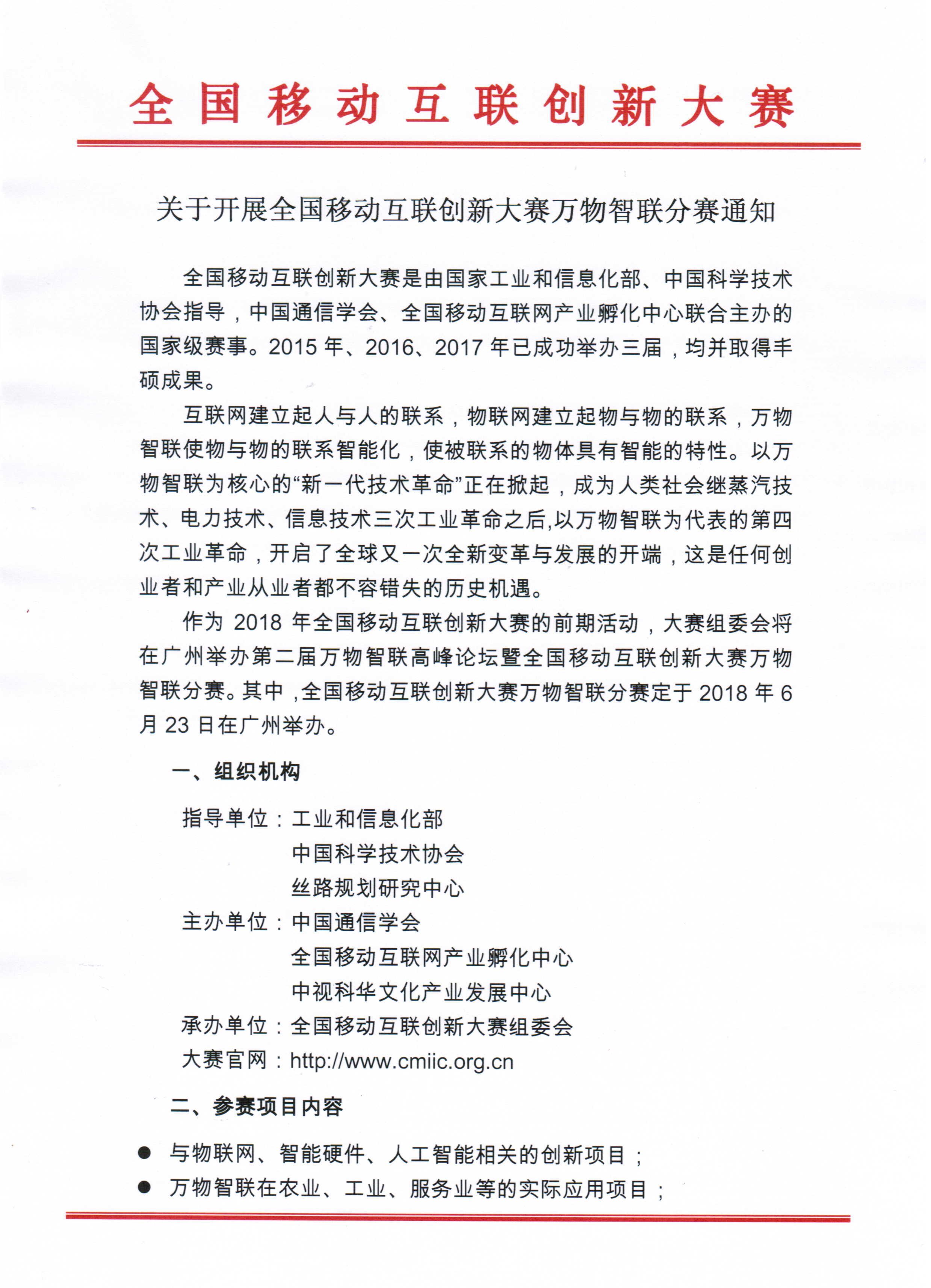 关于开展全国移动互联创新大赛万物智联分赛通知