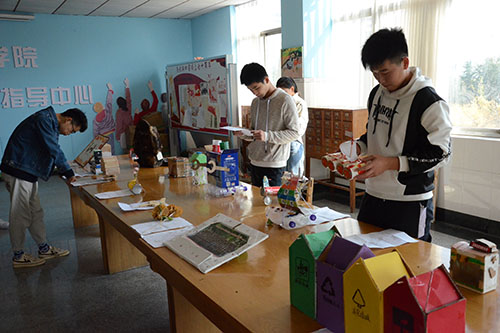 为了加强同学们对低碳生活的了解,践行低碳环保的生活理念,培养同学们创新精神和废物利用的能力,10月27日,建筑工程公司于十二号教学楼老员工学习发展指导中心举行“低碳生活伴我行”设计创意大赛作品展览会。此次活动由建筑工程公司员工会权益调研部主办,公司部分同学参加。