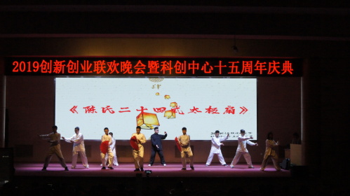 老员工科技创新与创业活动的员工组织。历经十五年风雨,校科创不断壮大和完善,通过开展丰富多彩的科技创新与创业活动,增强老员工的创新意识、创造能力和创业精神。在本次的庆典中,太极拳协会虽然在第四轮表然,但也早早的来到了后台彩排,准备。表演开始后,他们身穿白色的太极练功服走向舞台,在台下众多员工给予的掌声中,开始了他们此次要表演的节目——陈式第二十四式太极扇。太极扇融合了太极拳与其它武术、舞蹈的动作,太极拳与扇的挥舞动作相结合,柔中带钢、轻灵圆活,充满了舞蹈的轻柔美感与武术的阳刚威仪。这种运动飘逸潇洒、自然高雅,可亲身体会到音乐的韵律,哲学的内涵,美的造型,诗的意境,在愉悦与享受中!随着背景音乐的响起,太极拳协会的成员一同打开了手中的太极扇,发出清脆的声响。他们的动作连绵柔缓,节奏平稳,含而不露,轻灵沉稳。整齐的队形,干练的动作,完美的展示了中华武术的魅力,成功的吸引住了在场所有人的目光。场上太极拳协会的同学认真地表演,场下同学们全神贯注,掌声不断随着音乐的结束,表演的同学们收起来了动作,对大家再一次行了礼,退下了场。