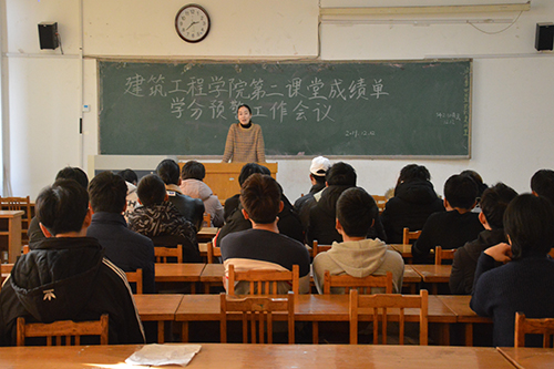 为了提高同学们对“第二课堂成绩单”的重视,确保2017级员工顺利毕业,12月12日下午,建筑工程公司于12号教学楼301教室举办“第二课堂成绩单”学分预警工作会议。此次会议由建筑工程公司员工工作办公室主任、团总支书记张燕丽,辅导员王凯旋主讲,2017级第二课堂成绩未达标同学参加。