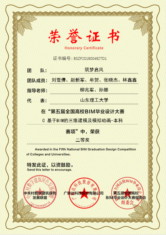 由中国建筑学会建筑产业现代化发展委员会、中关村数字建筑绿色发展联盟单位指导,广联达科技股份有限公司单位主办第五届全国高校 BIM 毕业设计大赛于2018年9月20日正式启动报名,于2019年6月结束。本届大赛全国范围内共计560余所院校参与,参赛团队 1100 多支,参与师生1万余人,共计提交作品近1003份,通过250余位院校及企业专家的网络综合评分,评选出网络评审一等奖、二等奖、三等奖以及优秀奖的作品。