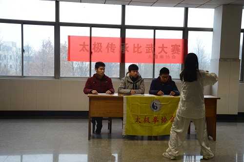 为检验太极拳协会新进成员在这一学期以来对太极拳的认识程度以及对太极拳的学习成果。12月16日下午2点半,建筑工程公司太极拳协会于12号教学楼三楼北大厅举办“太极传承”比武大赛。此次比赛由太极拳协会会长张语以及两位成员担任评委。参与者主要是太极拳协会的成员,也有许多的太极拳爱好者也参加了此次比赛。