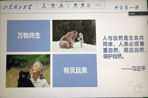 班会主要分为三部分内容。会议伊始,张燕丽首先以“此次疫情对于人类本身意味着什么?”为切入点,让同学们观看了几则短片和图片,让同学们对人类与自然之间的关系进行思考。她讲到,人是自然生态系统的一部分,同时人与自然也是生命共同体,人类对自然的伤害最终会伤及人类自身。使同学们认识到人类与自然之间最美的状态就是和谐共生。