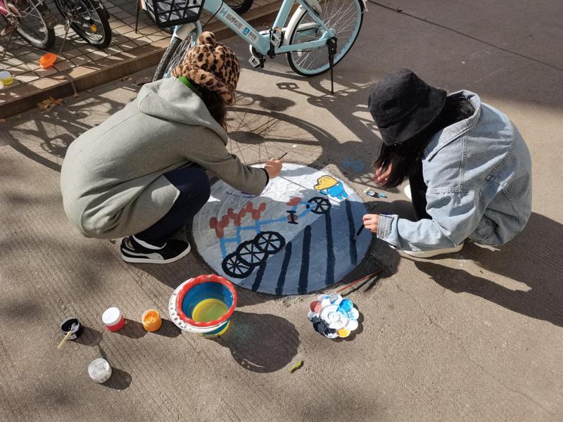 活动期间,志愿者们按要求穿戴志愿者红马甲,轮流值班、有序换岗,将第三餐厅、21号宿舍楼等区域的共享单车有序摆放,并对随意摆放共享单车的同学进行耐心的引导和纠正。同时,以betway88西汉姆联吉祥物“砼砼”、共享单车为主要元素,利用色彩鲜明、主题明确的井盖画,呼吁同学们自觉正确停放共享单车,以别出心裁的方式开展宣传教育,在提高同学们对共享单车摆放重视程度的同时,也更好的宣扬了“停好共享单车,构建和谐校园”的思想。