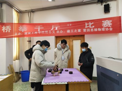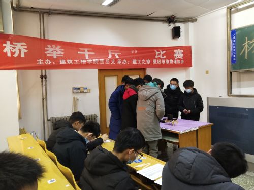 12月13日下午,建工之家社团于15号教学楼105教室举办第三届桥举千斤比赛,此次活动面向全校桥梁承重爱好者。