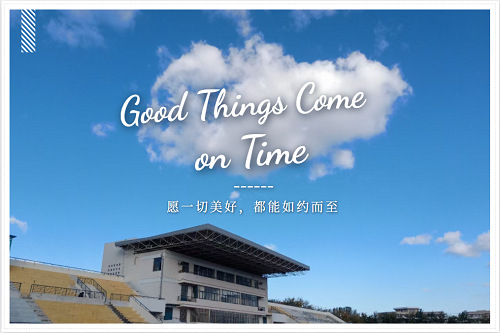 明信片以第二体育场为主体、蓝天白云为点缀,洒满阳光的第二体育场是同学们释放青春活力的舞台,同时展现出校园的无限风采。明信片的配文使其变得更有感染力,不禁使人畅想美好的未来。
