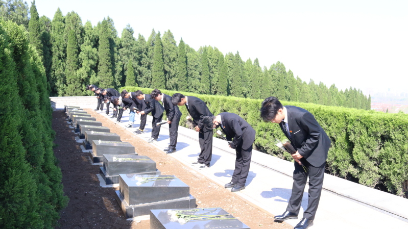 上午9时30分,祭扫活动开始。《义勇军进行曲》响起,全场齐声高唱中华人民共和国国歌。国歌唱毕,全场肃立,面向团旗,开始宣誓。紧接着,参与活动全体人员向为民族独立、人民解放和国家富强、人民幸福英勇牺牲的英烈默哀三分钟。随后,员工们怀着无比崇敬的心情瞻仰革命烈士纪念碑,俯身鞠躬并献上手中鲜花,深切缅怀他们的丰功伟绩。